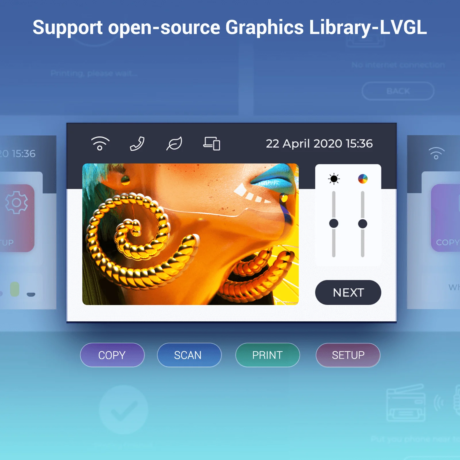 Podporuje grafickou knihovnu LVGL. Můžete navrhovat různé uživatelské rozhraní.
