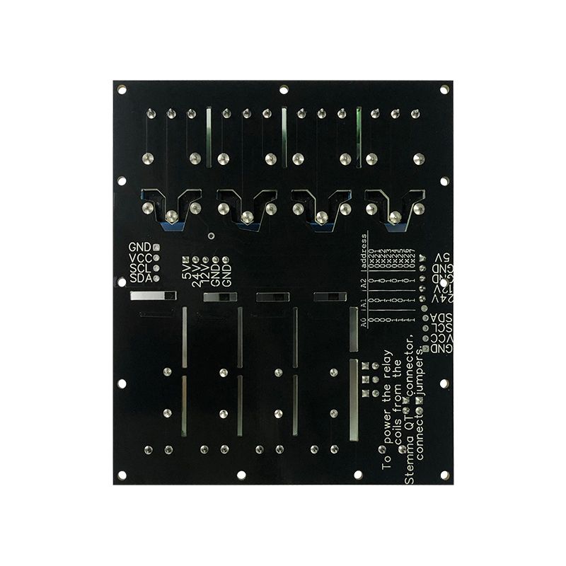 - Relé můžou být napájena přes 5V Stemma QT konektory při zapnutých ‚relay power‘ jumperech. (není doporučeno)