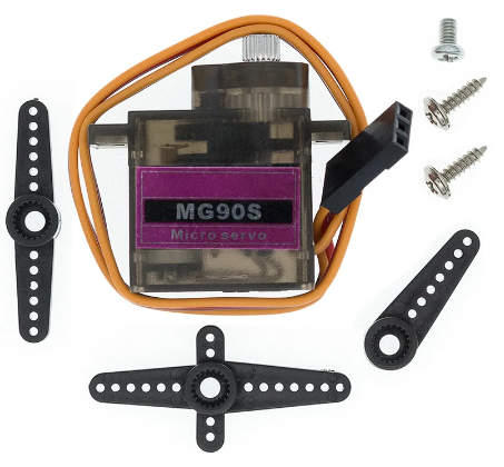 Serva SG90 a MG90 jsou stejného tvaru a velikosti, servo MG90 používá plastová kolečka, dosahuje díky tomu váhy pouhých 9 gramů.