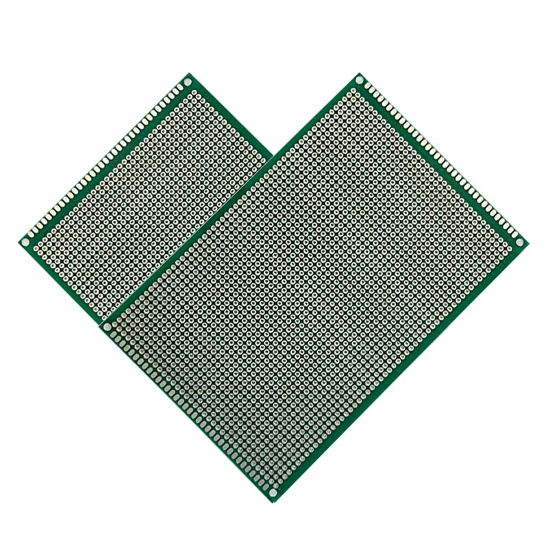 Univerzální oboustranná prokovovaná destička plošných spojů o rozměru 90 × 150 mm je určená pro rychlou stavbu a testování elektronických prototypů bez nutnosti navrhovat vlastní DPS. Nabízí samostatné kulaté pájecí body (bez předem propojených cest), takže si propojení vytvoříte přesně podle potřeby pomocí drátových propojek nebo cínu. Díky prokovům je každý bod elektricky dostupný z obou stran, což usnadňuje pájení, opravy i úpravy zapojení.